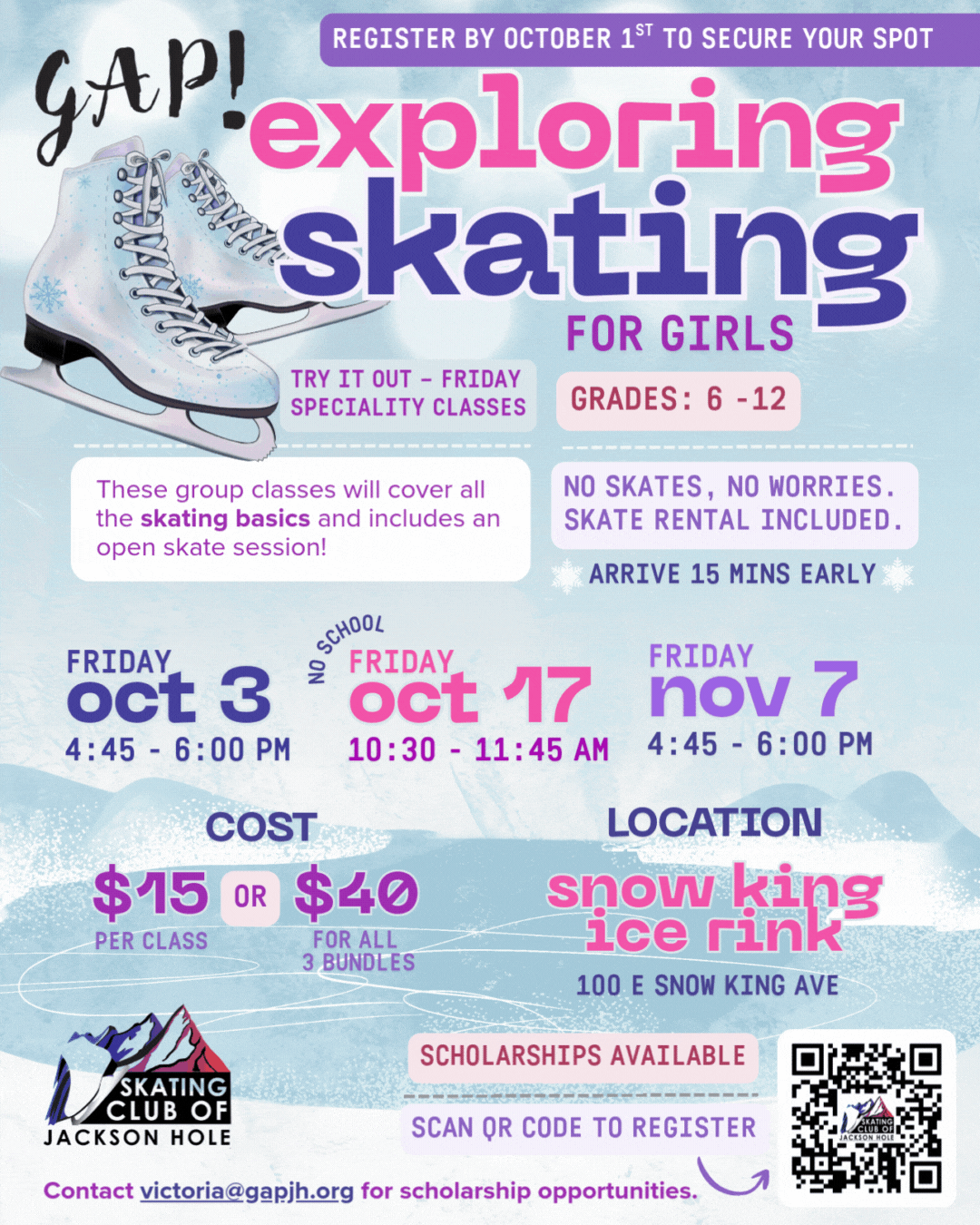 These group classes will cover all the skating basics. After the class, enjoy a 45-minute “open” skate session!